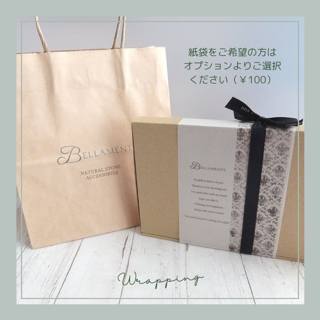 天然石のご指定がある場合、希少性などの関係上ご用意できない場合や、ご希望の金額でおつくりできないこともございます。基本はシリコンゴムでの作成になりますが、石の穴が小さい場合があり、ゴムが通せない場合がございます。その場合は真鍮素材の金具をお選びいただくか石の変更をお願いしております。