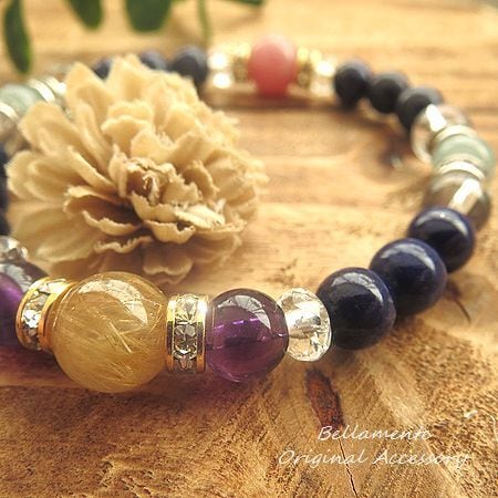 特別感あふれる希少なパワーストーンやチャームを取り入れ、人生の目的や目標に向かう力強いエネルギーをサポートします。華やかなデザインが、心を高揚させてくれるでしょう。
